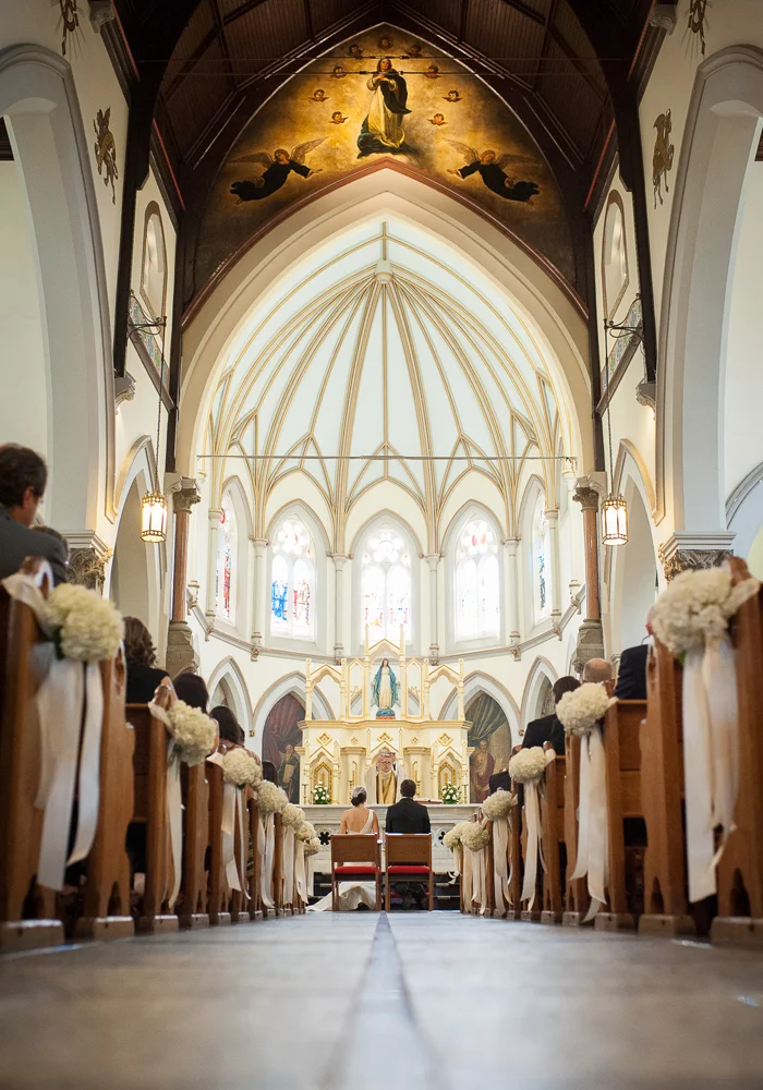 "Finding my perfect dress wasn’t nearly as daunting as I thought it would be. After getting engaged, I was gifted a few wedding magazines by my sister and sifted through them. One particular collection stood out to me for their clean lines and structured gowns. The Hampton gown by Amsale stood out above the rest. It was featured in every Amsale advertisement I saw during the summer of 2012. There was something about the simplicity and class of the gown that I loved. It very much emulated my style – clean lines, simple and classic. My mother and I went to an Amsale trunk show so I could try it on and a few short weeks later Pear Bridal House brought in the sample gown so my sister could give her yay or nay. She agreed it was “the one” and after two days and three bridal salons, I had found my dress. I loved the one shoulder as it is a look you don’t often see on brides. The crumb catcher top and cinched waist worked well with my figure. The open back provided a bit of sexy to an otherwise full coverage gown and the natural A-line hugged in the right areas. I felt great in the dress – I felt as if I wore the dress and not the other way around. The dress was “very Jenny” as my sister put it, so I knew it was the one. In fact, a few months before the wedding my mom and my aunt were at a salon for a fitting of my mom’s dress. They were sifting through wedding magazines and stopped on a page with all of Amsale’s gowns. My Mom must have made it known that my dress was by that designer, and my Aunt pointed to the Hampton, telling her that it was very much my style."