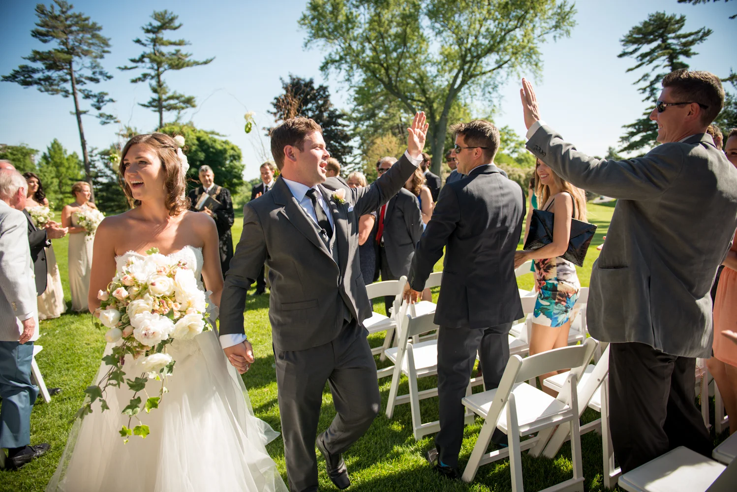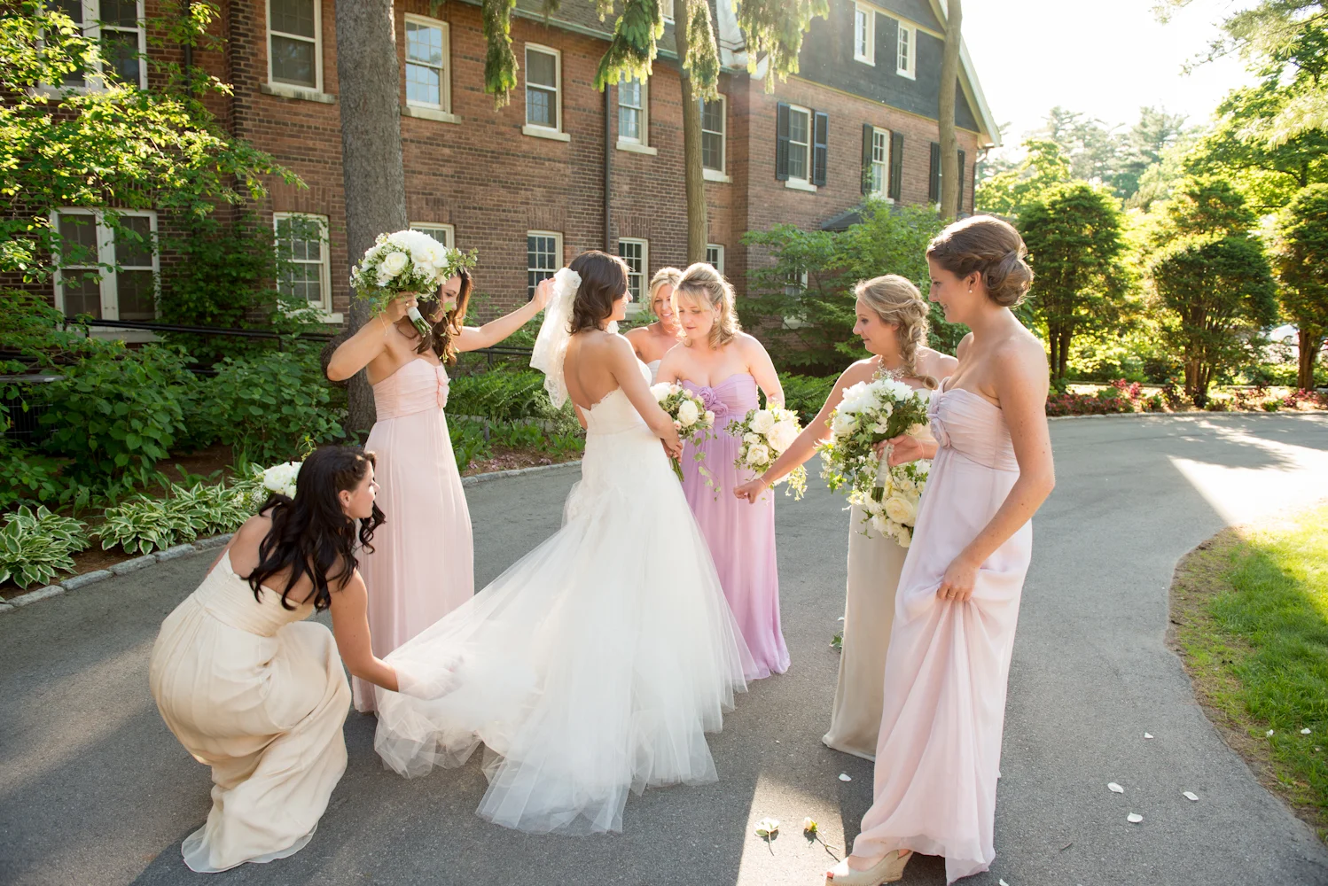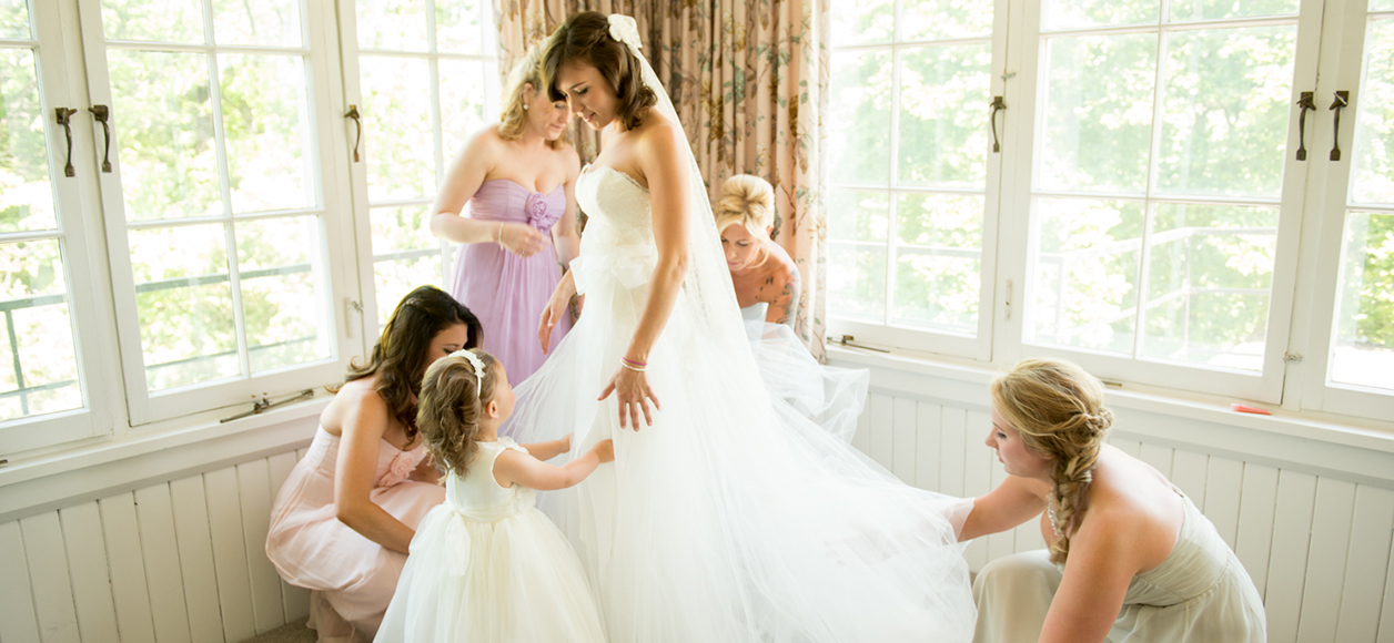 Jocelyn’s bridesmaids are wearing Amsale Bridesmaids available at Pearl Bridal House
