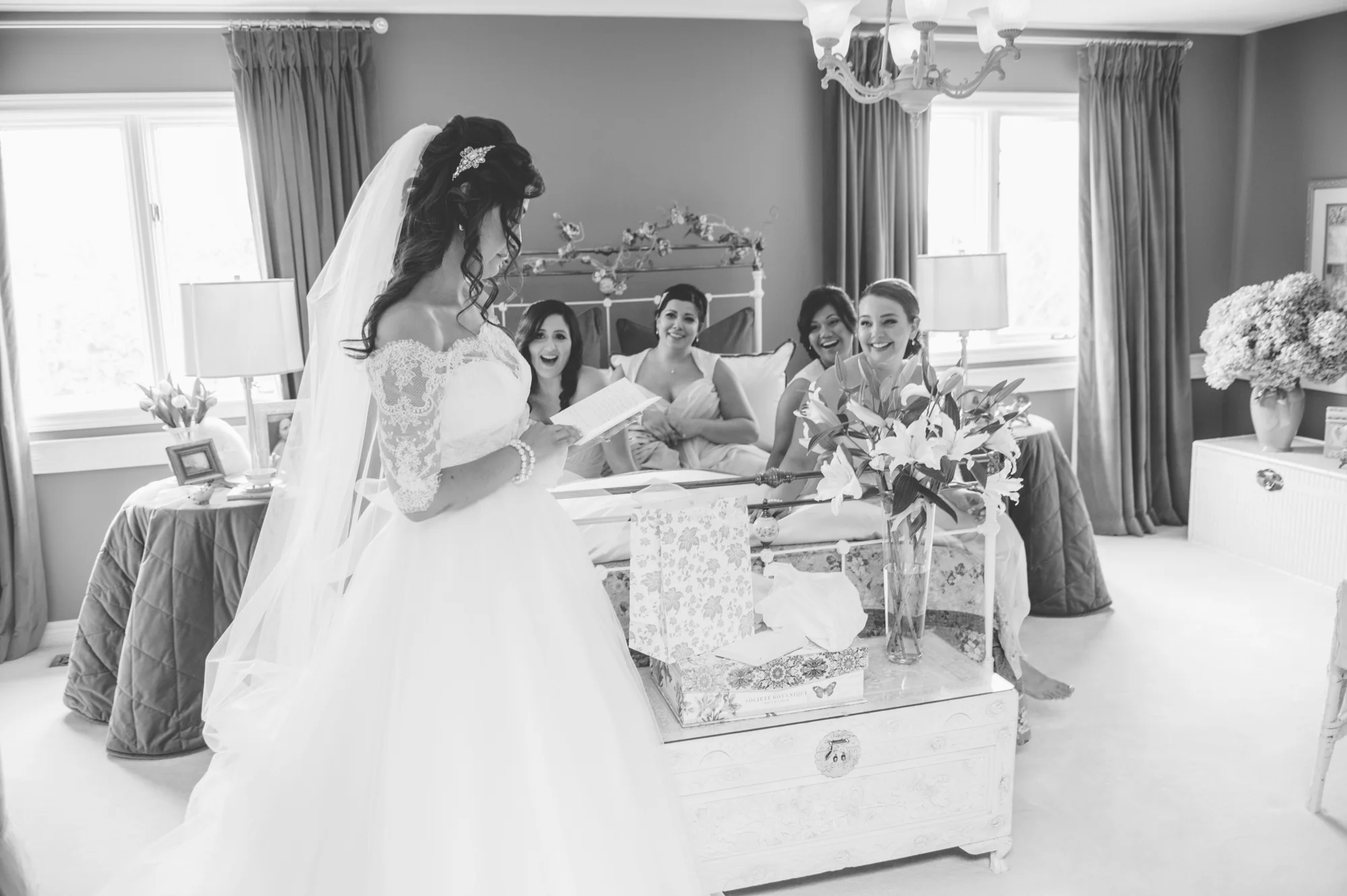 Melissa’s bridesmaids are wearing Amsale Bridesmaids in Blush available at Pearl Bridal House