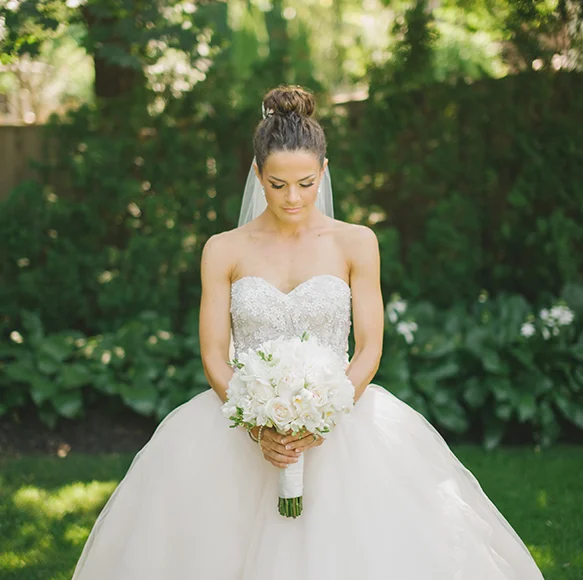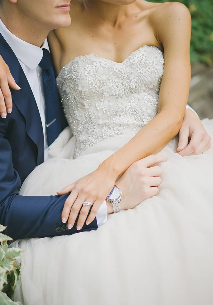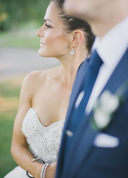 Michelle is wearing Olympia by Kenneth Pool available at Pearl Bridal House