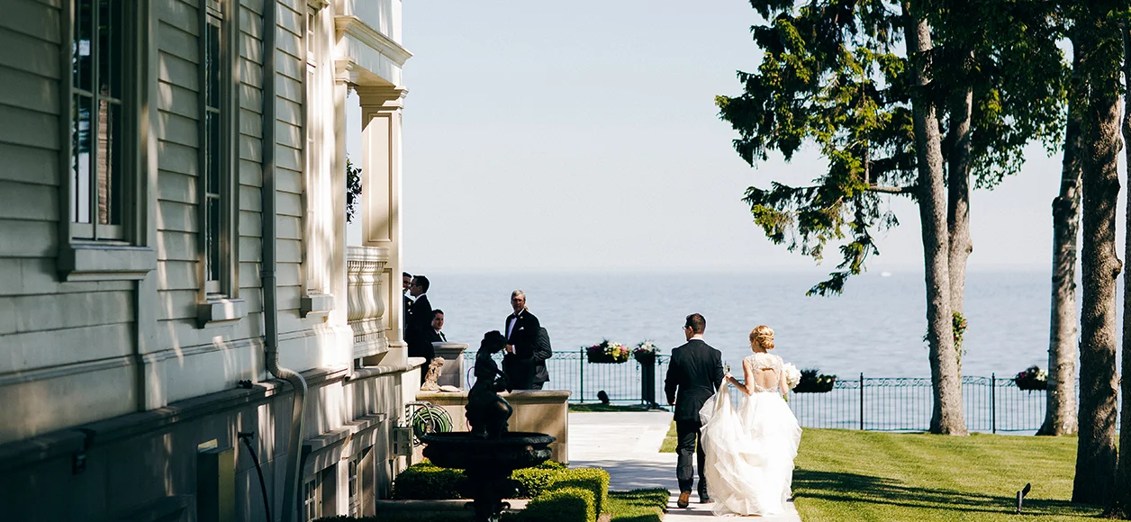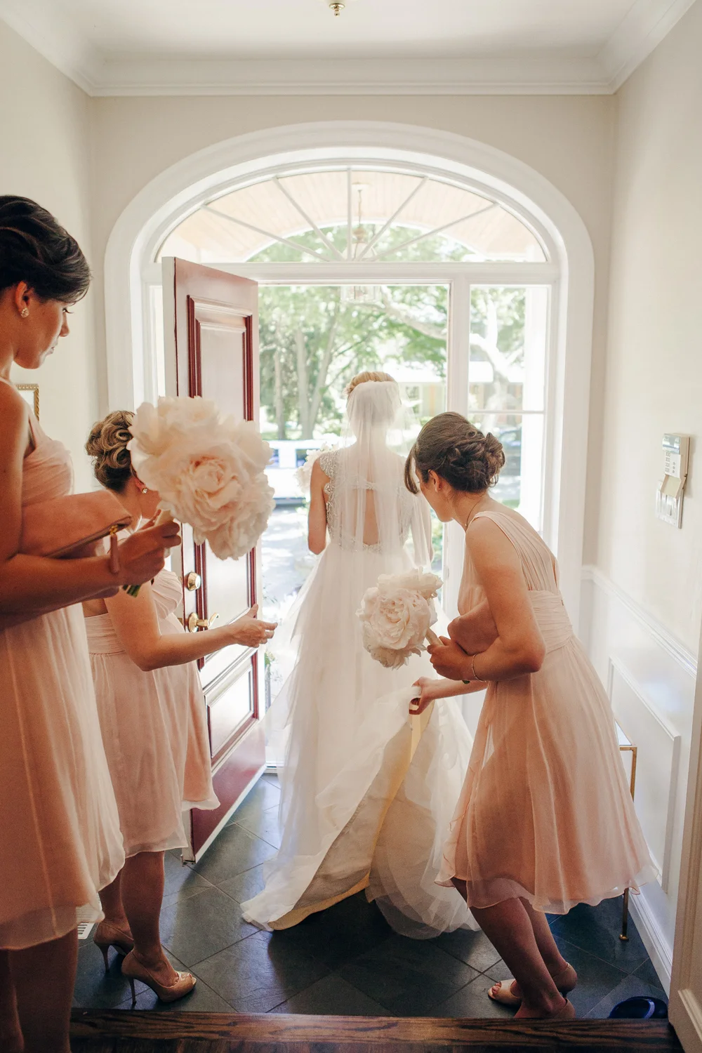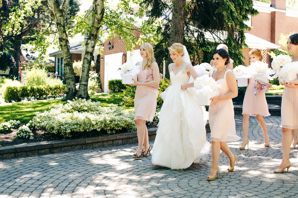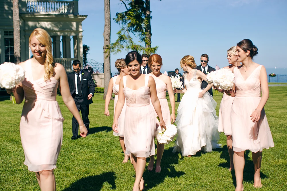Sarah’s bridesmaids are wearing Amsale Bridesmaids available at Pearl Bridal House